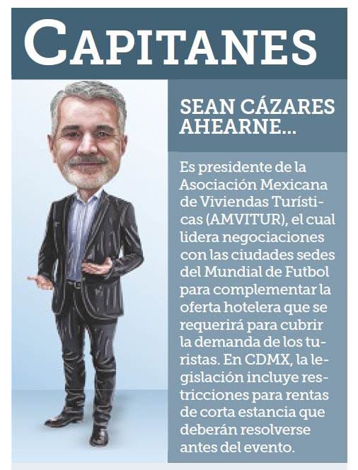 Es presidente de la Asociación Mexicana de Viviendas Turísticas (AMVITUR), el cual lidera negociaciones con las ciudades sedes del Mundial de Futbol para complementar la oferta hotelera que se requerirá para cubrir la demanda de los turistas. En CDMX, la legislación incluye restricciones para rentas de corta estancia que deberán resolverse antes del evento.